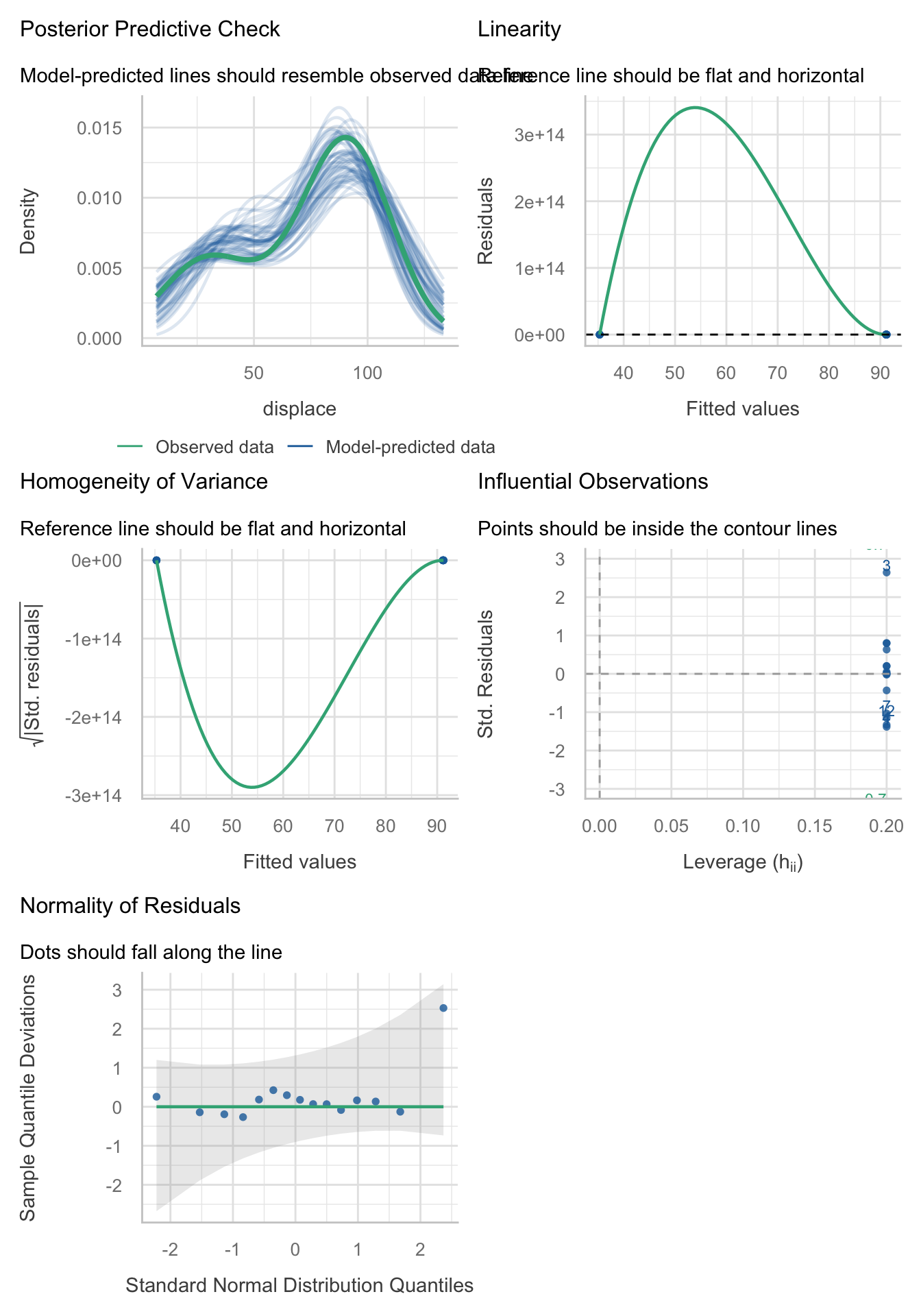 These solutions assume you have a setup code chunk at the start of your document that loads the easystats and tidyverse packages: