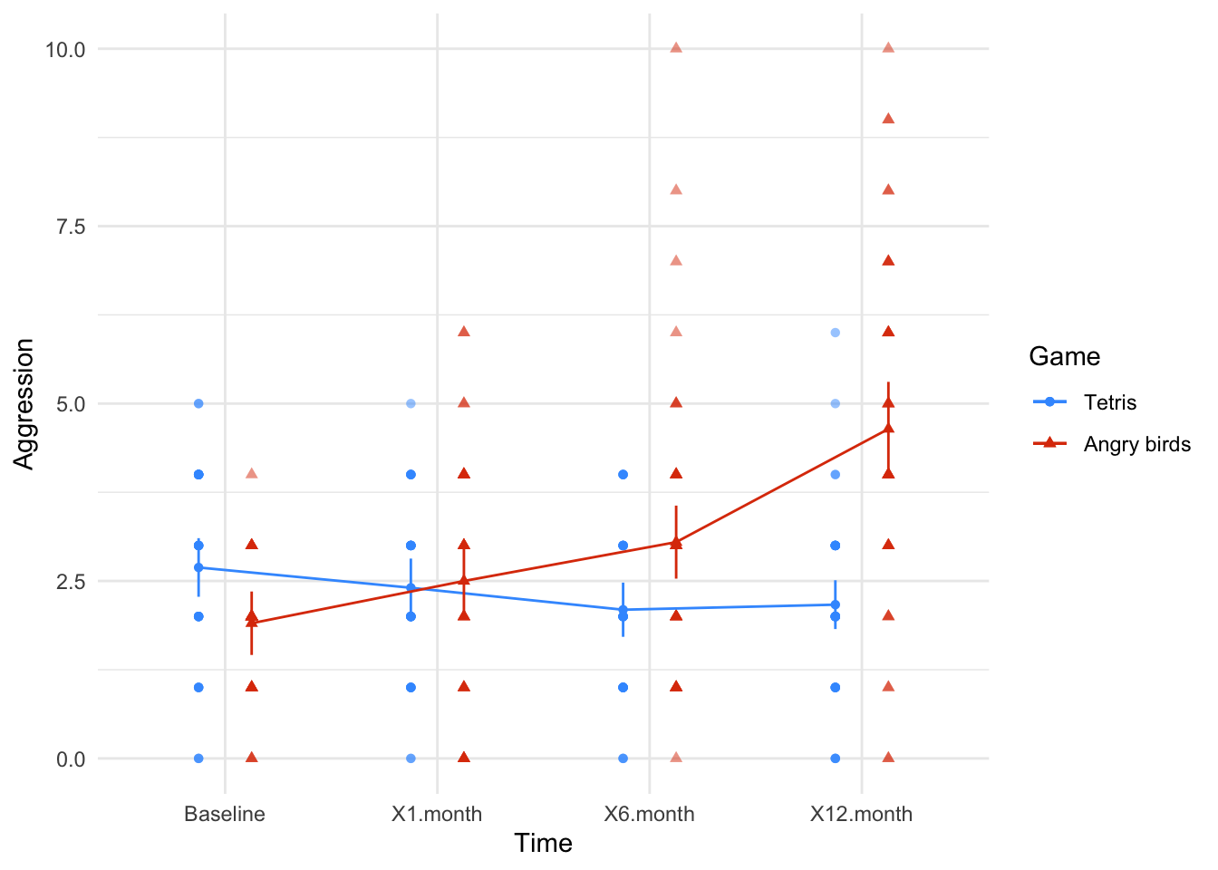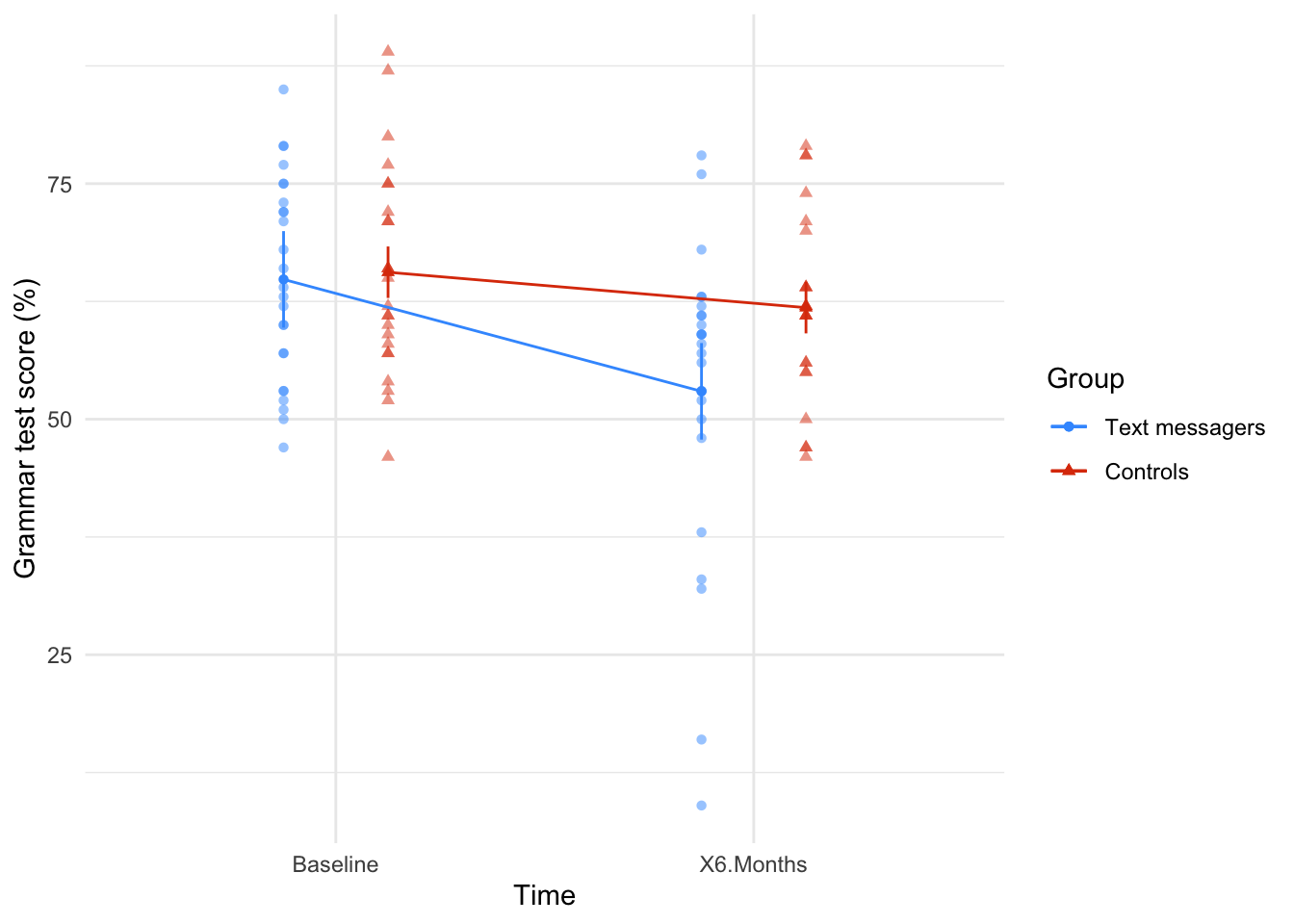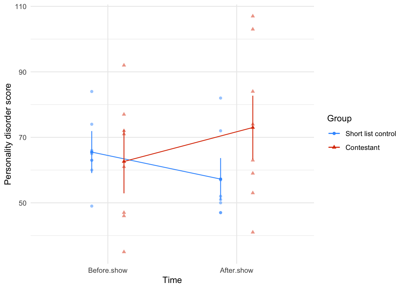 - Analyse the data: look at the data visually and by fitting a statistical model to see if it supports your predictions (and therefore your theory). At this point you should return to your theory and revise it if necessary.