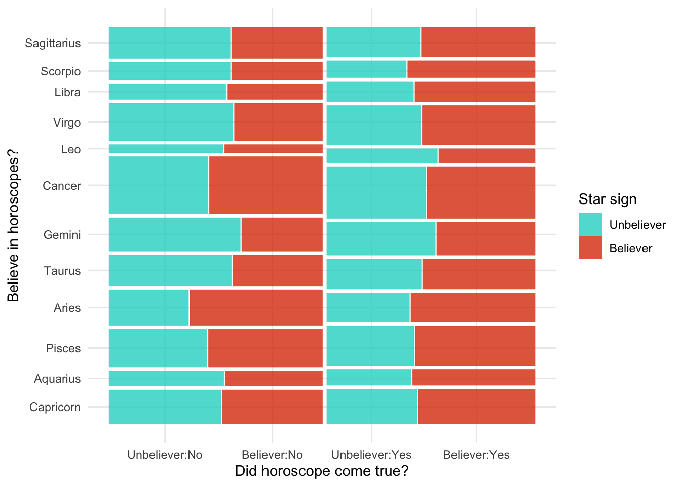 Figure 99 shows a plot of the predicted probabilities. The code is based on Section 19.7.5 of the book. From the plot, it looks as though we might have complete separation: for each level of agreeableness (each coloured line) the model can almost perfectly predict group membership based on extroversion.